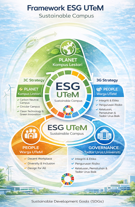 Kerangka ESG UTeM disusun berdasarkan tiga komponen utama: