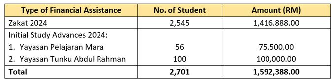 Besides, UTeM offers zakat assistance and initial study advances to eligible students.