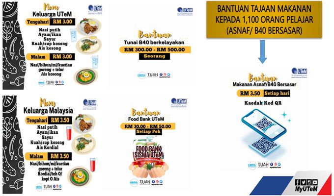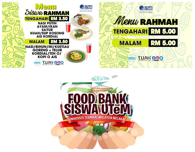 UTeM supports students through several food assistance initiatives, including the Menu Siswa Rahmah Programme, TUAH Care Food@Campus, and the Food Bank.