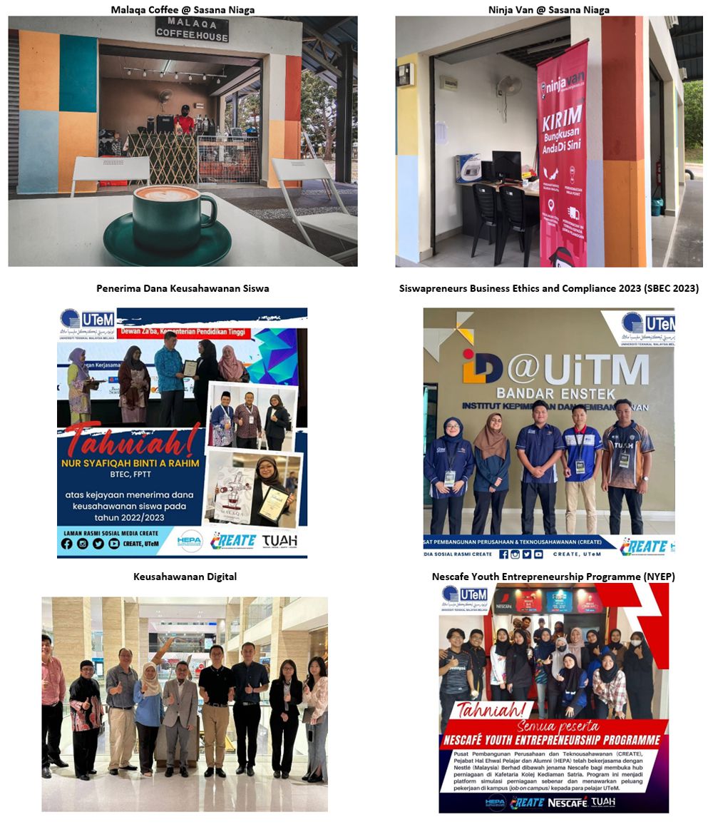 1. Siswapreneurs Business Ethics and Compliance 2023 (SBEC 2023) 2. Keusahawanan Digital 3. Sasana Niaga 4. Nescafe Youth Entrepreneurship Programme (NYEP)