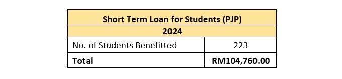 UTeM students also receive financial assistance from Short Term Loans (PJP), where in the year 2024, a total of 223 students have received benefits from this loan involving an amount worth RM104,760.00.