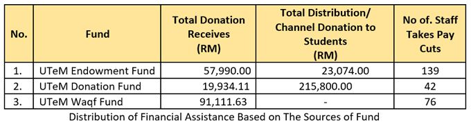 The picture below shows the continuous initiatives to help UTeM students, especially from the lower-income category: