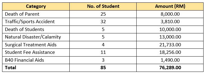 Additionally, UTeM offers welfare assistance to students, as illustrated in the following data.