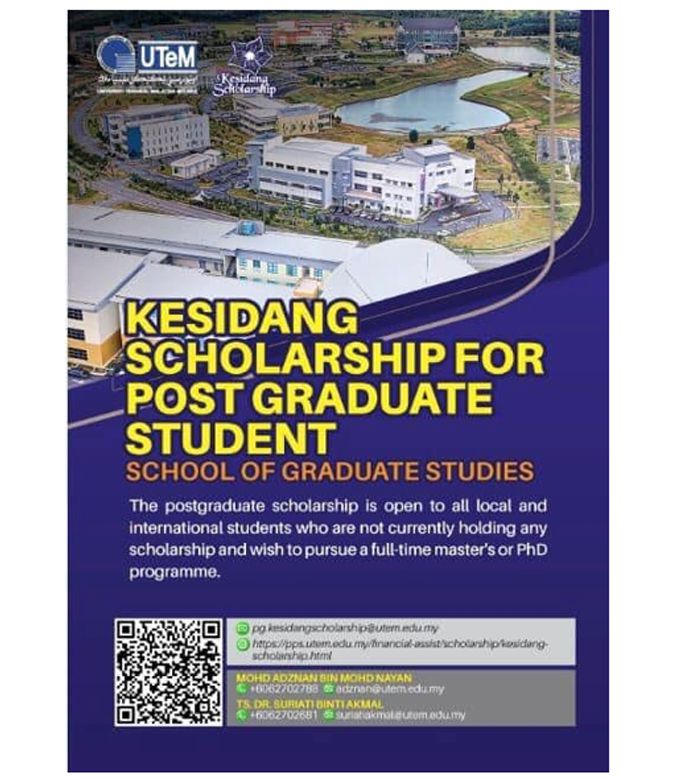 Kesidang Scholarship announcement brochure for postgraduate students.