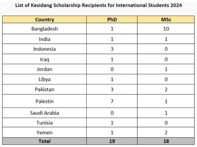 Universiti Teknikal Malaysia Melaka (UTeM) has allocated RM10 million for the Kesidang Scholarship Programme, which will be awarded over a period of five years to individuals who wish to pursue their studies at the university, including students from crisis-affected countries such as Palestine.