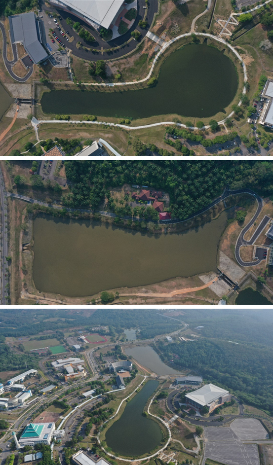 UTeM mempunyai sistem pembetungan yang berasingan, untuk air sisa dan sistem saliran (air hujan, wuduk, dll). Air hujan yang dikumpul dari bumbung bangunan kemudian dialirkan ke tiga tasik tadahan UteM iaitu Tasik Gemilang, Tasik Cemerlang dan Tasik Terbilang. Untuk memastikan keselamatan air di tasik tadahan untuk sebarang aktiviti air, analisis bakteria Leptospira dilakukan secara berkala setiap tahun. Sampel diambil dari beberapa titik di tasik dengan jumlah 15 lokasi.