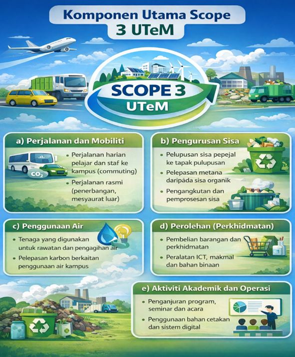 Antara komponen utama Scope 3 bagi UTeM adalah: