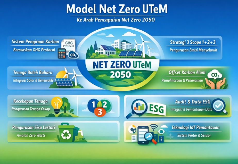 UTeM telah berada pada landasan yang kukuh dalam pengurusan kelestarian, khususnya dalam pengurangan emisi karbon melalui pendekatan berstruktur dan berasaskan data. Walau bagaimanapun, untuk mencapai aspirasi Net Zero, universiti perlu melangkah ke tahap yang lebih strategik dengan memperluaskan skop pelaksanaan kepada tenaga boleh baharu, pengurusan karbon menyeluruh dan integrasi ESG.