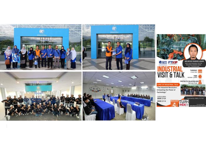 Seramai 10 orang pensyarah pengiring dan 23 orang pelajar telah mengadakan Lawatan dan Ceramah Industri ke PROTON Tanjung Malim Plant di PROTON CITY, Perak. Mereka terdiri daripada pelajar Sarjana Muda Teknologi Kimpalan Tahun 2 yang mengambil kursus BMIK2124-Electrical Welding Equipment dan BMIK2114-Analisa Berbantu Komputer, Semester II Sesi 2023/2024.