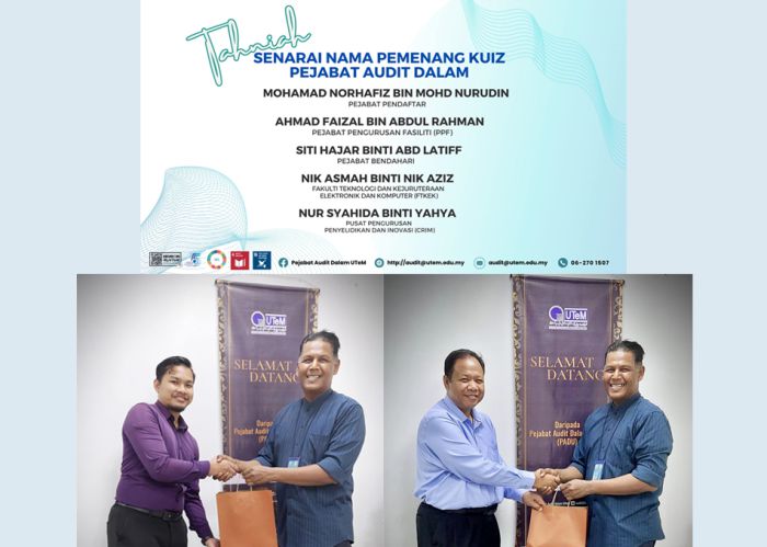 Kuiz Pejabat Audit Dalam diadakan bagi memberi kesedaran dan ilmu yang boleh dimanfaatkan kepada warga UTeM berkaitan Audit Dalam seterusnya menyokong SDG 16 – Membangunkan institusi yang berkesan, bertanggungjawab dan telus.