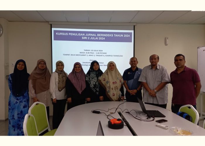 Jawatankuasa Penerbitan FTKM yang diketuai oleh Prof. Madya Ir. Ts. Dr. Mohd Azli Salim telah menganjurkan Kursus Penulisan Jurnal Berindeks Tahun 2024 Siri 2, berlangsung di Bangunan FTKM, Kampus Teknologi. Kursus ini merupakan salah satu inisiatif oleh Jawatankuasa Penerbitan FTKM bagi meningkatkan penghasilan penulisan dan penerbitan artikel jurnal berindeks di kalangan staf akademik fakulti yang turut membantu pencapaian tahunan penerbitan Fakulti.