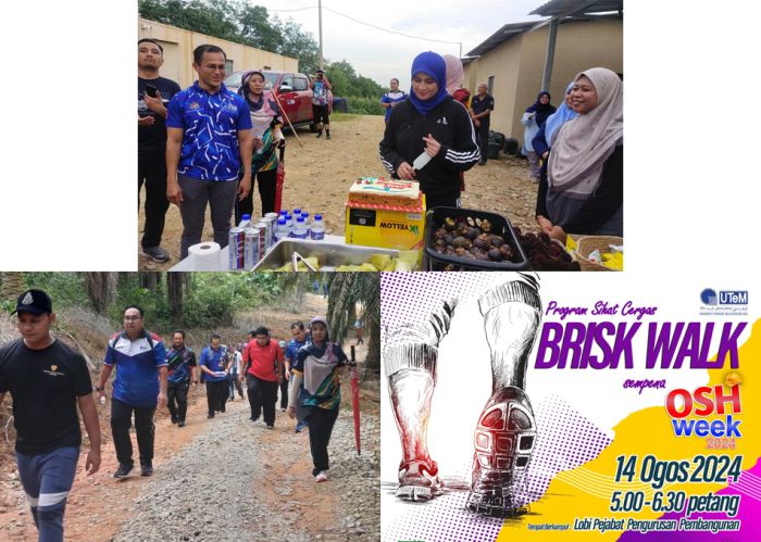 OSH WEEK tahun 2024 menganjurkan pelbagai aktiviti termasuk pengisian aktiviti kecergasan. Program briskwalk ini merupakan antara inisiatif untuk membudayakan gaya hidup sihat dan selamat dalam kalangan Keluarga UTeM.