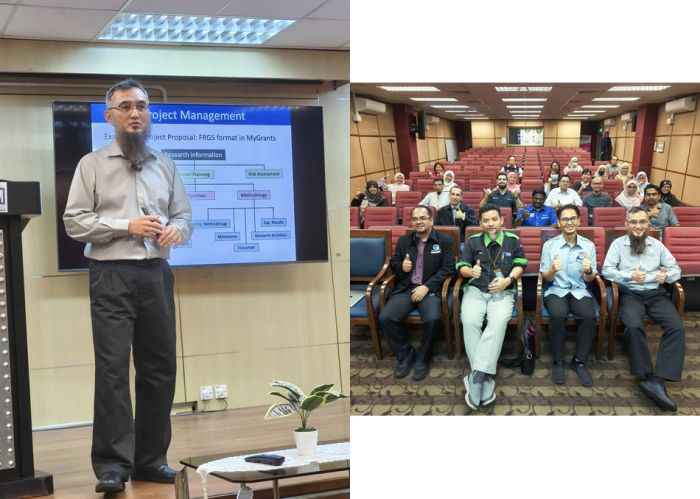 Seminar Pengurusan Projek Penyelidikan telah disampaikan oleh Prof. Madya Ir. Dr. Abang Annuar Ehsan dari UKM. Seminar ini ditujukan khusus kepada Penyelidik Utama yang menerima geran penyelidikan bagi tahun 2023 dan 2024. Pengurusan Projek Penyelidikan merupakan elemen kritikal dalam memastikan kejayaan dan keberkesanan sesuatu projek penyelidikan. Seminar ini bertujuan untuk memperkukuhkan kemahiran pengurusan projek dalam kalangan penyelidik, serta membudayakan amalan pengurusan berkesan.